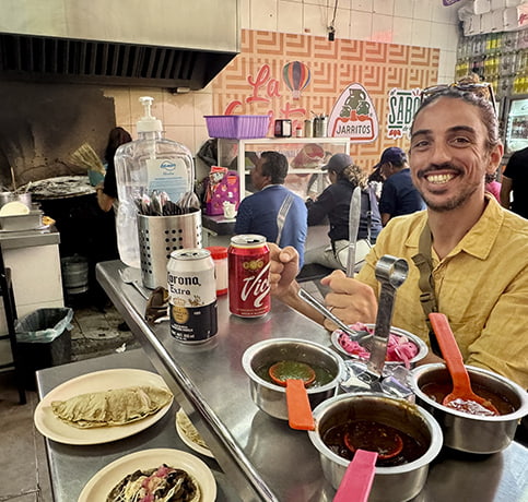 - Bars à mezcal et restos locaux : Oaxaca est reconnue pour être une ville où l’on mange bien ! Faites-vous plaisir et tester aussi les cocktails à base de Mezcal ! S’il fait chaud, optez pour des bars avec piscine, comme le 3/7 Wombat et pour une ambiance méga locale « El Superior » (avec Jukebox).
