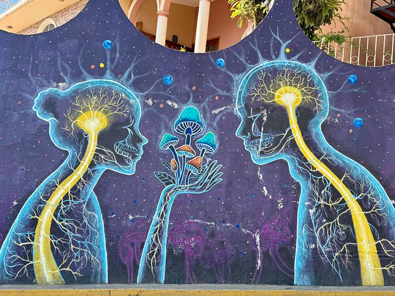 - Découvrir le street art, dans toute la ville… on est arrivés au lever de soleil sur Oaxaca et on a marché jusqu’à notre hébergement… il nous a fallu le double du temps pour arriver tellement les rues sont belles…