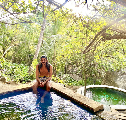 - Activités outdoor : rando rivière avec eaux chaudes (50p/p accès rivière et 100p/p pour les aguas calientes (à San José Manialtepec). Super journée chill, possibilité de faire la balade en cheval et de dormir sur place à mi-chemin), kayak et bioluminescence (déjà fait donc on a passé notre tour)…